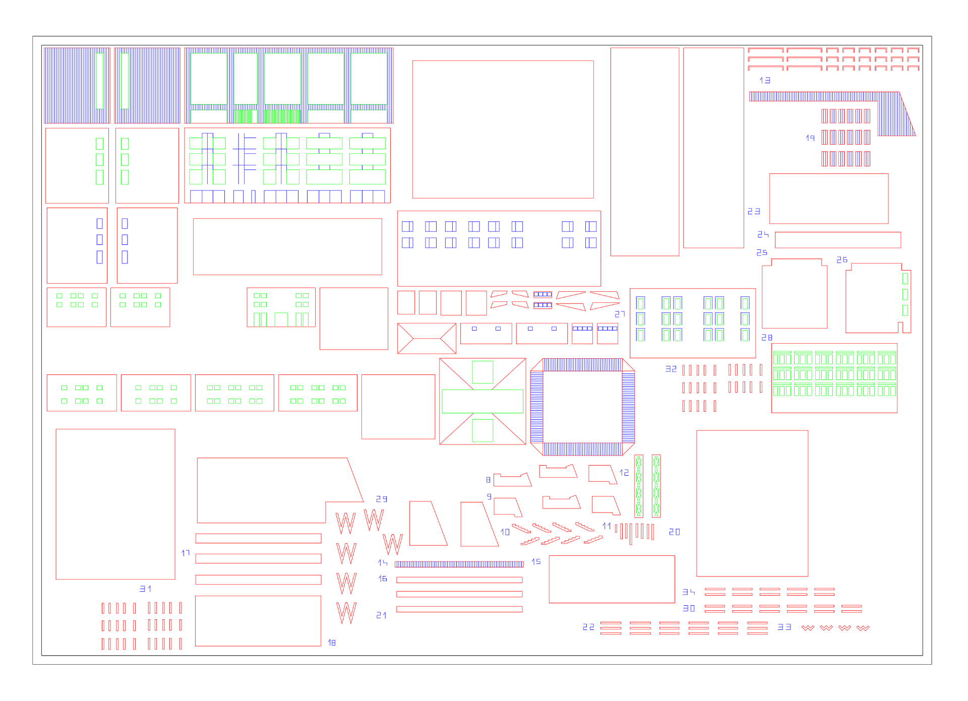 - Červená - vrstva pro řez (skrz materiál, zůstane v desce)